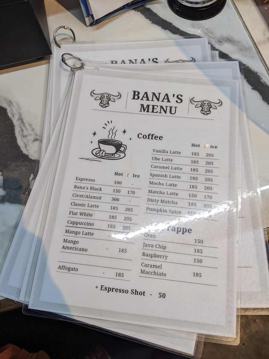 Bana's Coffee Menu